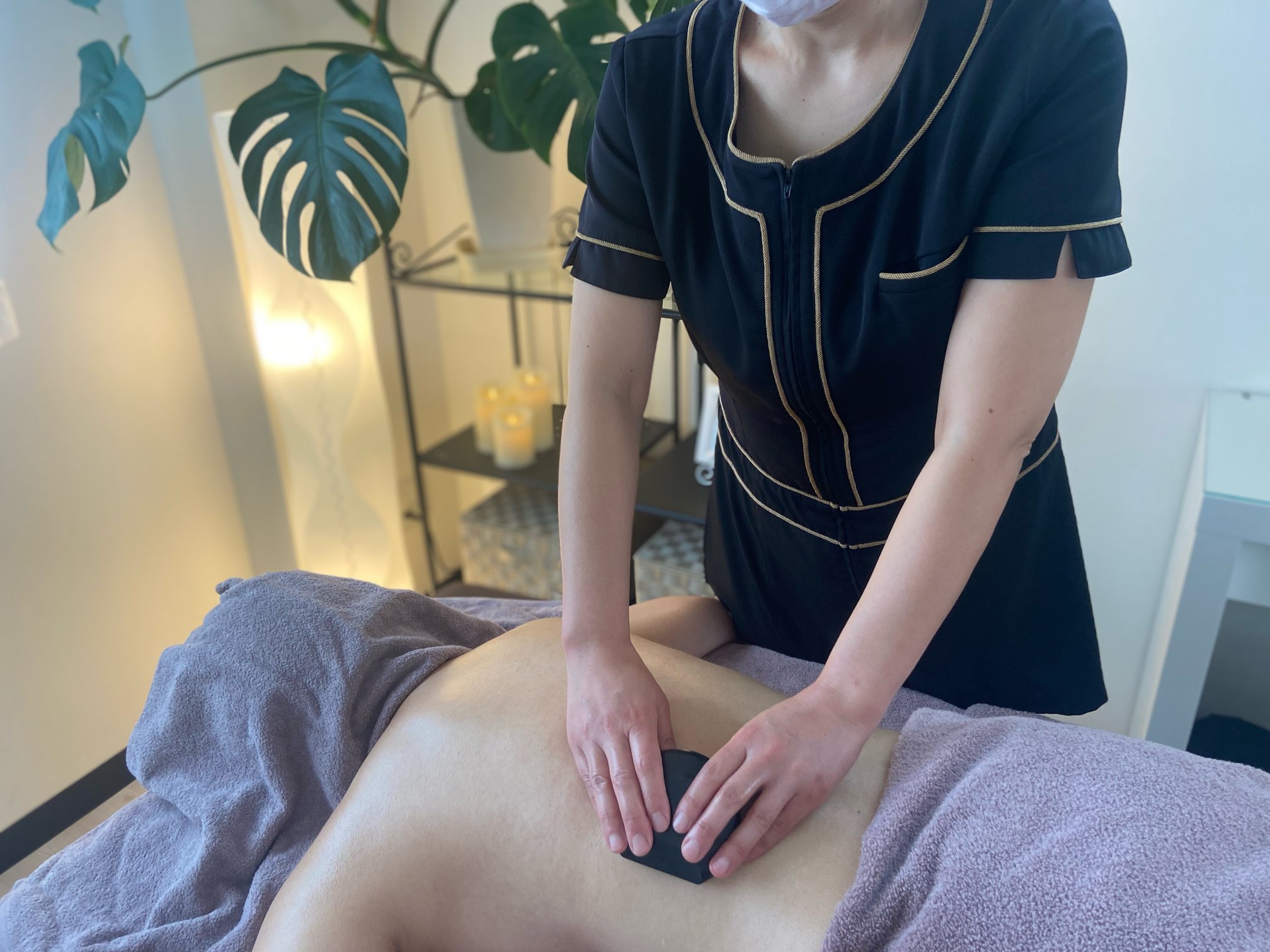 SOAREの痩身コースは、葉マム➕キャビテーション➕バザルト®︎ストーン➕ハンドマッサージを組み合わせた
